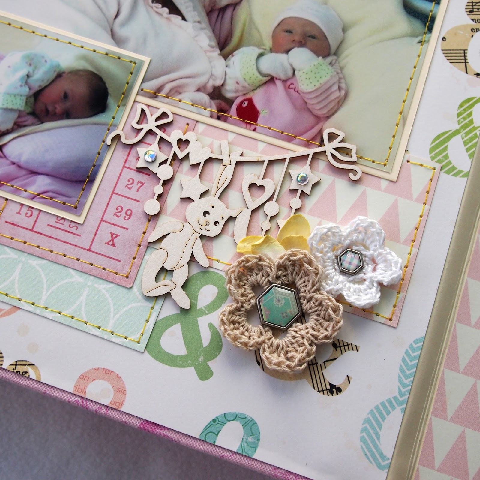 Какой детский альбом без очаровательных вязаных цветочков..?))) Тем более самые первые, трогательные и нежные странички)