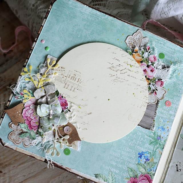 Обложка украшена множеством самых разных элементов, гармонично сложившихся в единую композицию. Здесь много вырубки, высечек из набора "Дыхание весны", вырезанных из крафта отштамповок и многого другого!